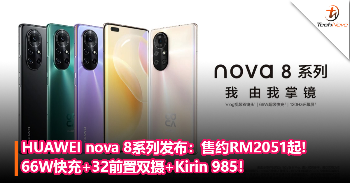 Huawei Nova 8系列发布 66w快充 32mp前置双摄 Kirin 985 售价约rm51起 Technave 中文版